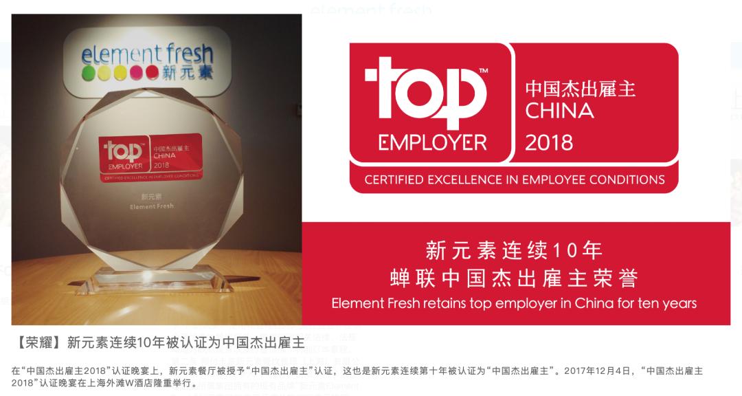 自2002年开张以来,新元素每年都获得由杂志读者评出的诸多顶级美食和服务奖项,曾在上海被评为“最佳美式餐厅”。