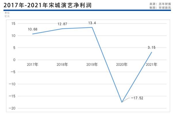 2021全年宋城演艺营收同比上涨31.27%至11.85亿元,净利润同比增长117.98%至3.15亿元,实现扭亏为盈。