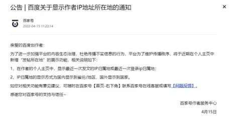 知乎则表示,将在问答页面显示用户发布内容时的IP属地;百度公告称,将于近期在个人主页中新增“发帖所在地”的展示功能。
