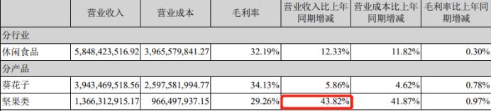 这一点在财报中也有体现,2021年洽洽葵花子仅增长5.86%,对比坚果业务营收同比增长43.82%,瓜子业务在国内的增长几乎已经触到了天花板。