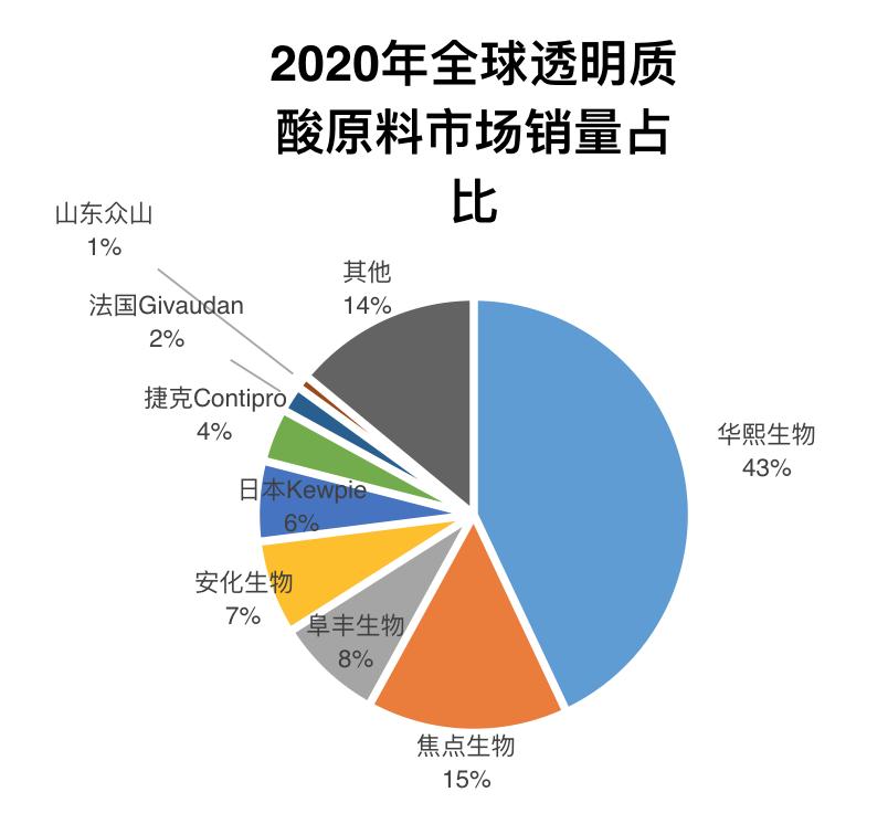 据弗若斯特沙利文,按销量计算,2022年华熙生物占全球透明质酸原料市场的近半壁江山。
