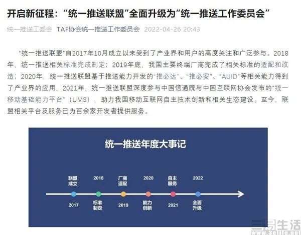 时至今日,统一推送联盟终于要“谢幕”了。日前,“统一推送联盟(Unified Push Service,UPS)”宣布全面升级为“统一推送工作委员会”。
