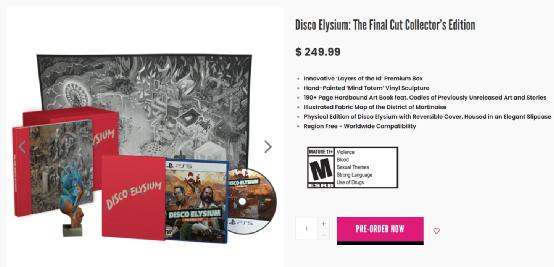 但这并不是结束,《极乐迪斯科》的开发团队在Steam上线了游戏的最终剪辑版之后,又迅速把游戏搬到了PS平台,并且在同年推出了游戏的实体典藏版,售价高达249.99美元。至此,《极乐迪斯科》凭借最终剪辑版的更新和后续的一系列宣发,不仅提升了自身的销量,还开拓了主机平台的市场,在盈利上也取得了不小的成功。