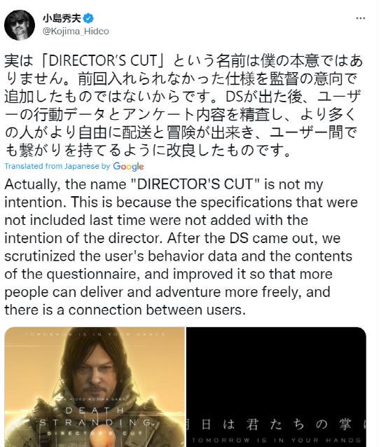 令人担忧的是,这样的现象还在持续出现,一度引起热议的动作游戏《死亡搁浅》也正在推出自己的导演剪辑版,这同样也是需要原版玩家付费才能享受到的版本升级。《死亡搁浅》的制作人小岛秀夫可能早就看出其中的问题,并且表达了自己的观点:导演剪辑版这个名字真的不太合适。