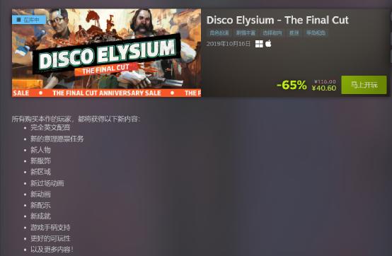 游戏制作者在原版游戏的基础上推出的导演剪辑版,不仅迎合了玩家的喜好,实际上也寄托了自己的情怀。角色扮演游戏《极乐迪斯科》的最终剪辑版就可以说是制作团队的情怀之作,在《极乐迪斯科:最终剪辑版》中,开发者为游戏多达百万字的文本准备了完全英语配音,同时加入了四个全新的支线任务,以及一些新人物和道具,开发组将《极乐迪斯科:最终剪辑版》称为迄今为止的最佳版本。