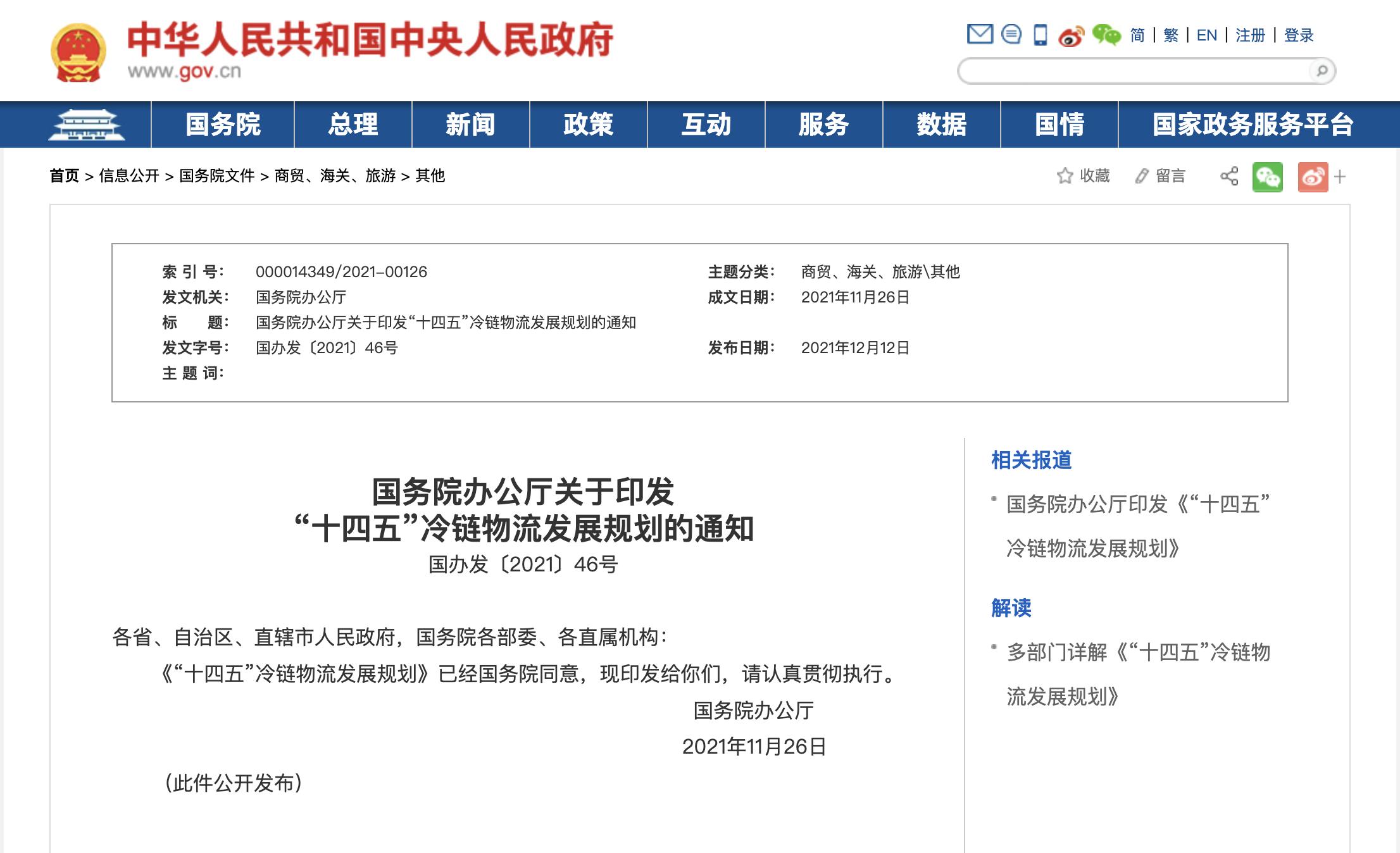 今年来,冷链物流领域的相关政策也持续出台落地。