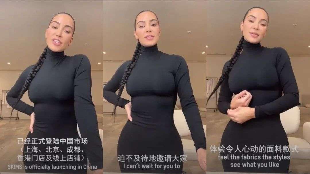 沉寂两年后,卡戴珊换了一套打法。2021年11月,穿着Skims黑色高领紧身裙的卡戴珊发布视频宣布,其紧身衣品牌Skims将进入中国市场,并亲自为中国消费者挑选了100多款产品率先在上海和香港的连卡佛百货发售。