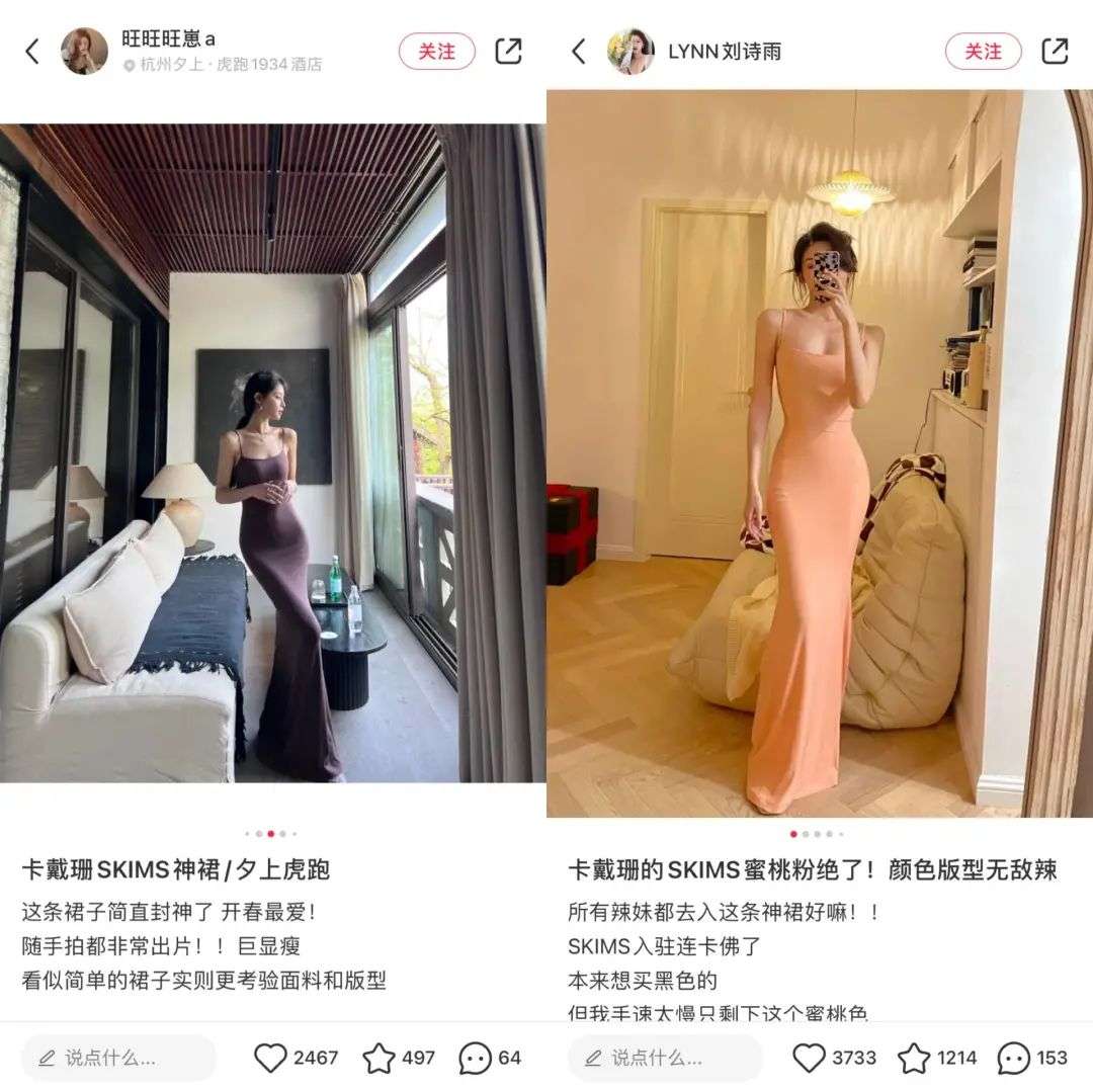 于是,最近小红书那些晒自己穿Skims裙的女孩,都无形中成了被其他女孩默默羡慕的对象: