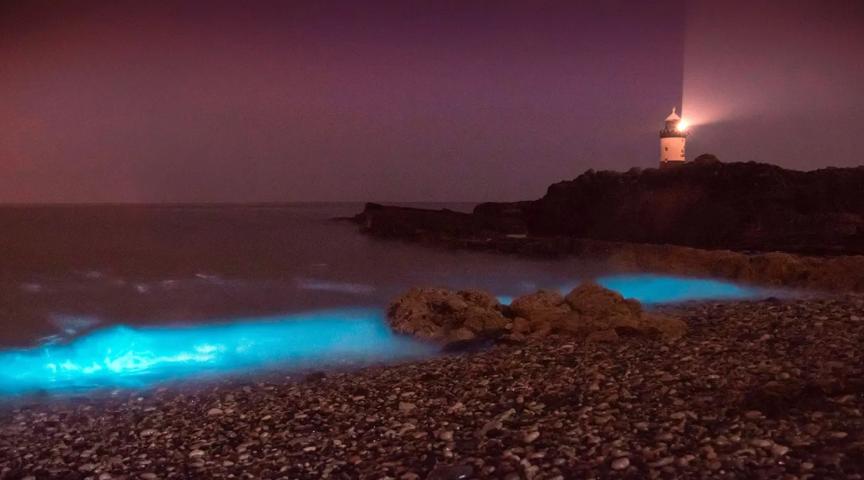 荧光海滩,甲藻被海浪、船只等惊扰时会发出蓝光|Eleanor Hamilton