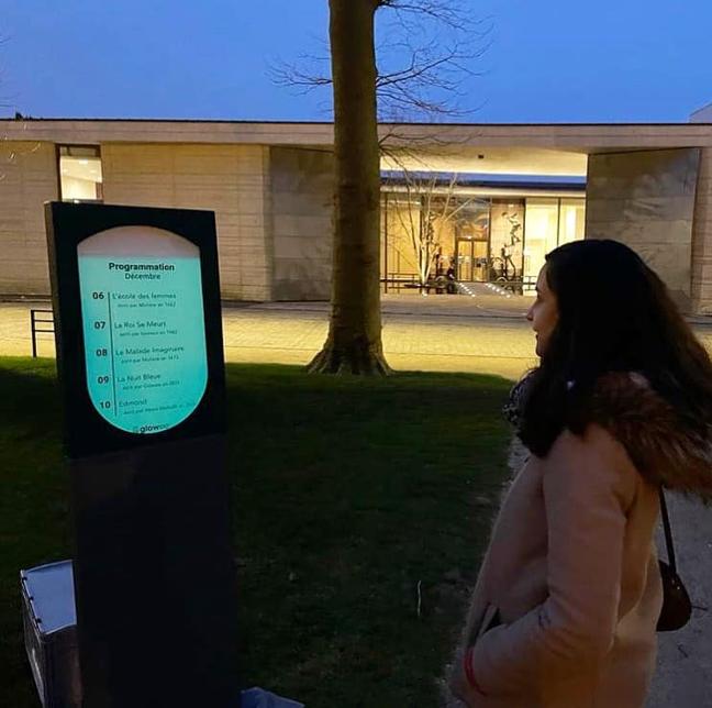 这些河岸边的发光管子是法国生物照明公司Glowee的首个户外生物照明装置。除此之外,Glowee也在疫苗留观区安装了这种灯,人们可以沐浴在温柔的蓝绿色光芒下,平静地等待时间流逝。