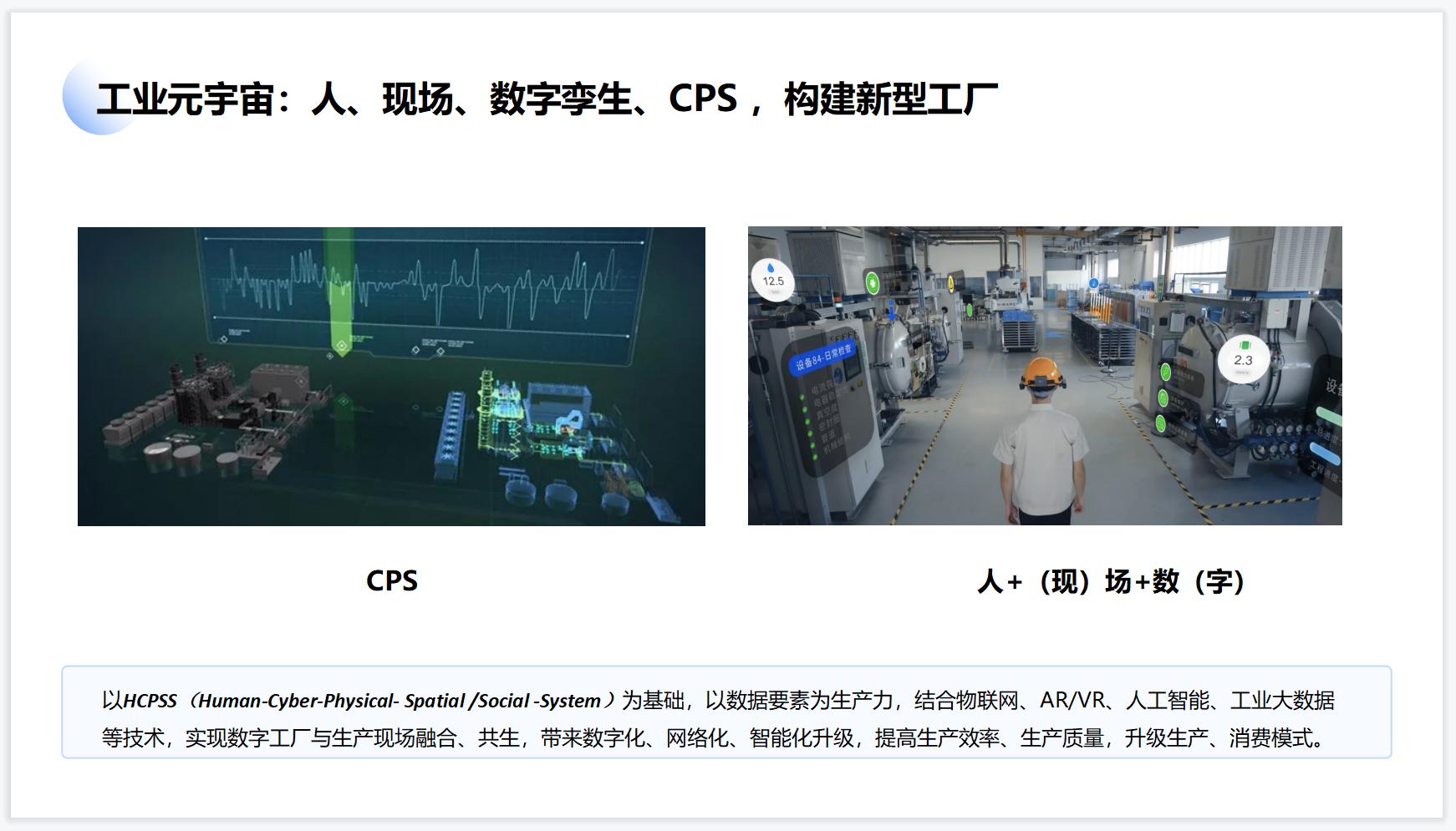 例如工业元宇宙可以连接可见的人、设备、产线、环境与不可见的“数据、模型、知识、智慧”,完成“感知-认知-决策-执行”的闭环,实现“看到不可见,看懂看不懂,做到不可能”。