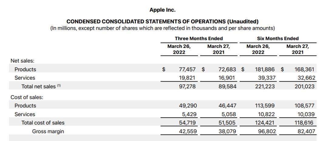 当然,苹果最恐怖的指标还是毛利率。数据显示,苹果Q1整体毛利率为43.7%,同比增长1.2个百分点,高于彭博经济学家的预期中值43.1%。