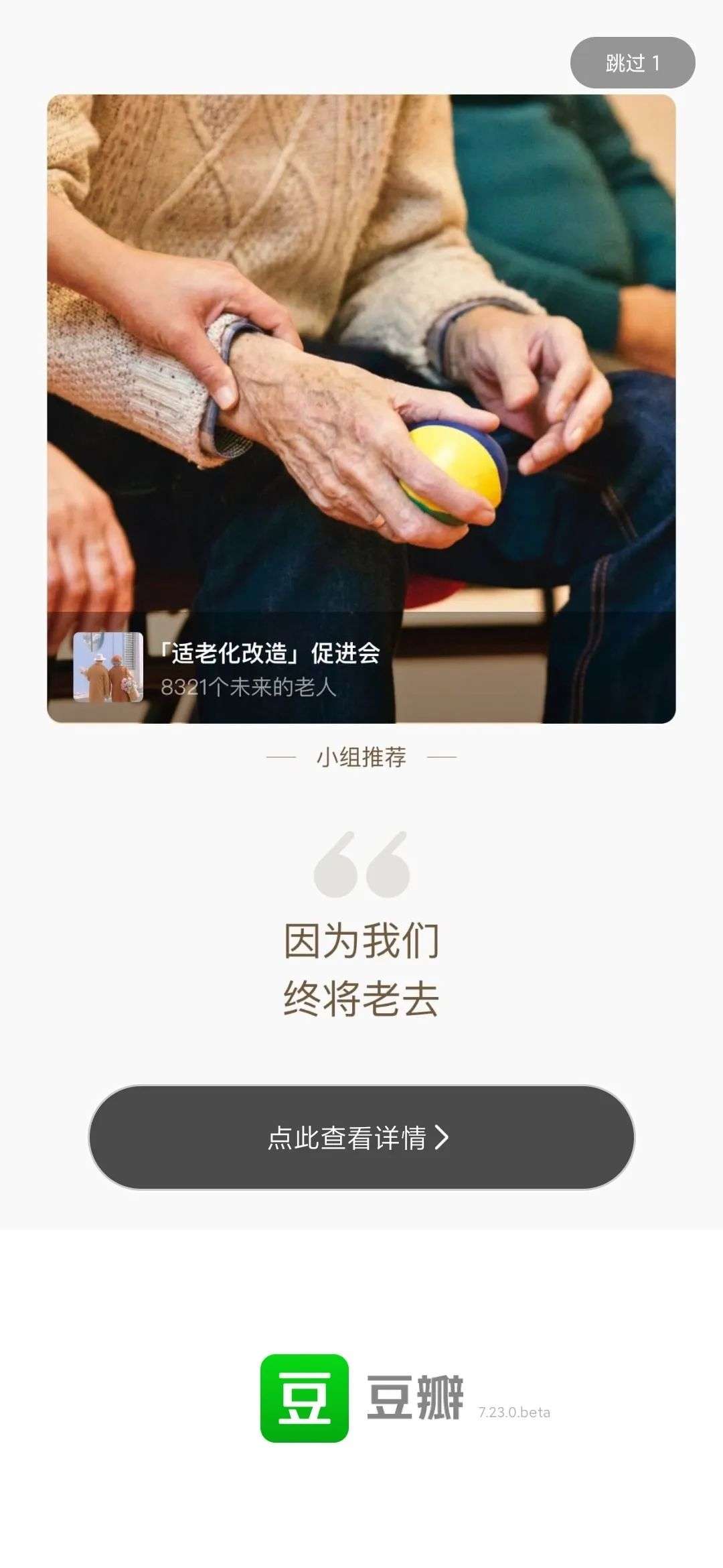 「适老化改造」促进会豆瓣开屏截图,图源受访者