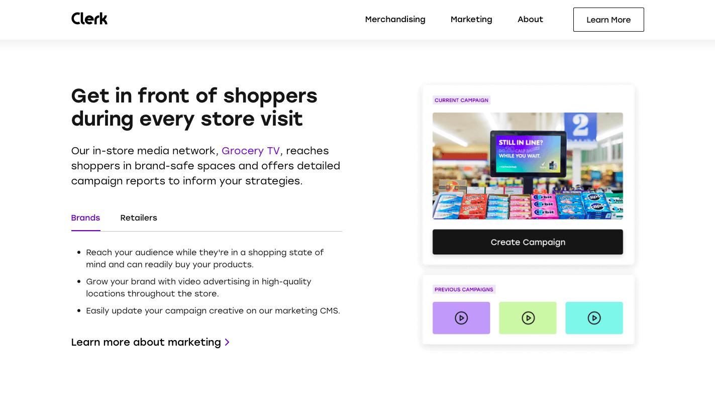 「Clerk」创建了一个名为“Grocery TV”的数字广告网络,并为品牌方和零售店提供屏幕(通常设置在收银台通道旁),以改善消费者的购物体验。该公司称在过去两年间收入增长了两倍,并在去年实现了净盈利。