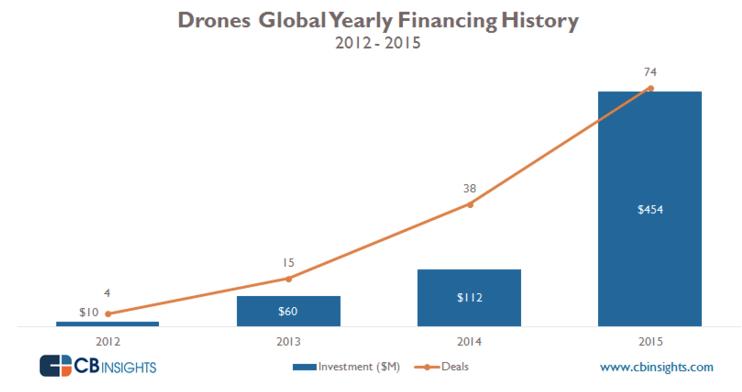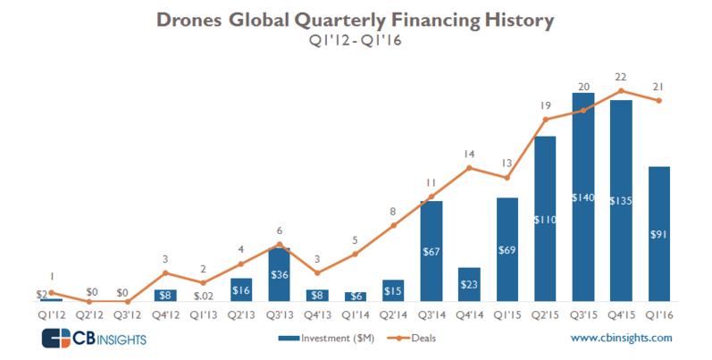 2016年Q1无人机投资趋势:投资金额同比下降33%,资金正流向A轮及以后的公司