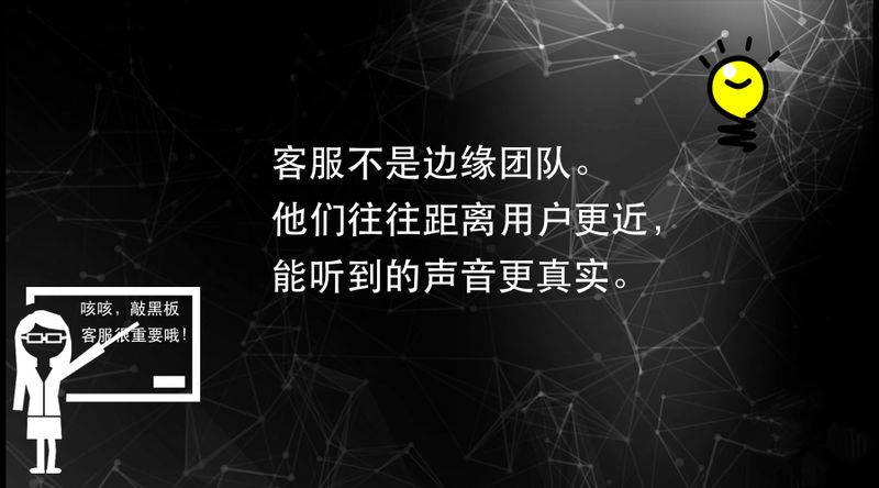 我做了将近 15 年的产品,深知用户需求和反馈对产品的促进作用。在我看来,客服是公司里不容忽视的团队。他们离用户更近,能听到用户更真实的声音。他们绝不是接接电话打打杂的小角色,也不是接受用户吐槽甚至谩骂的受气包,更不是公司里可有可无的边缘人。客服连接用户与产品、运营、技术、销售……在公司里是一个中间角色。(这里提到的客服,是大客服概念,在有些公司客服还承担销售职能,有时甚至被称为运营。)