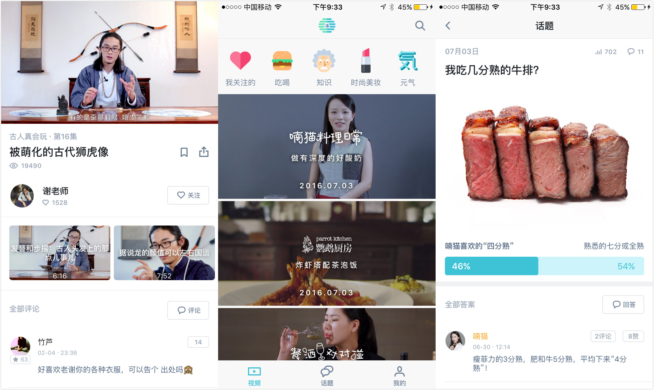 一方面:对于 “小世界” APP 而言,其迭代的新版本意在强调百科属性。具体而言,应用的首页添加了分类和索引(吃喝、知识、时尚美妆等),来帮助用户找到自己所需要的内容。其次也增加了话题板块,比如 “我吃几分熟的牛排?”、“咖啡喝Costa还是星巴克?”,鼓励用户投票和互动。张林轩希望未来这些话题也有可能成为大家生活品位的风向标。
