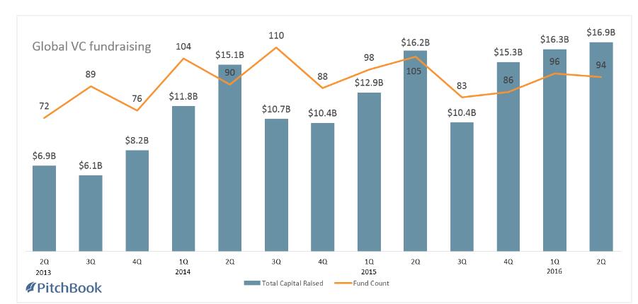 2016年第2季度全球风险投资总额同比上涨20%,说好的“冷却”呢?