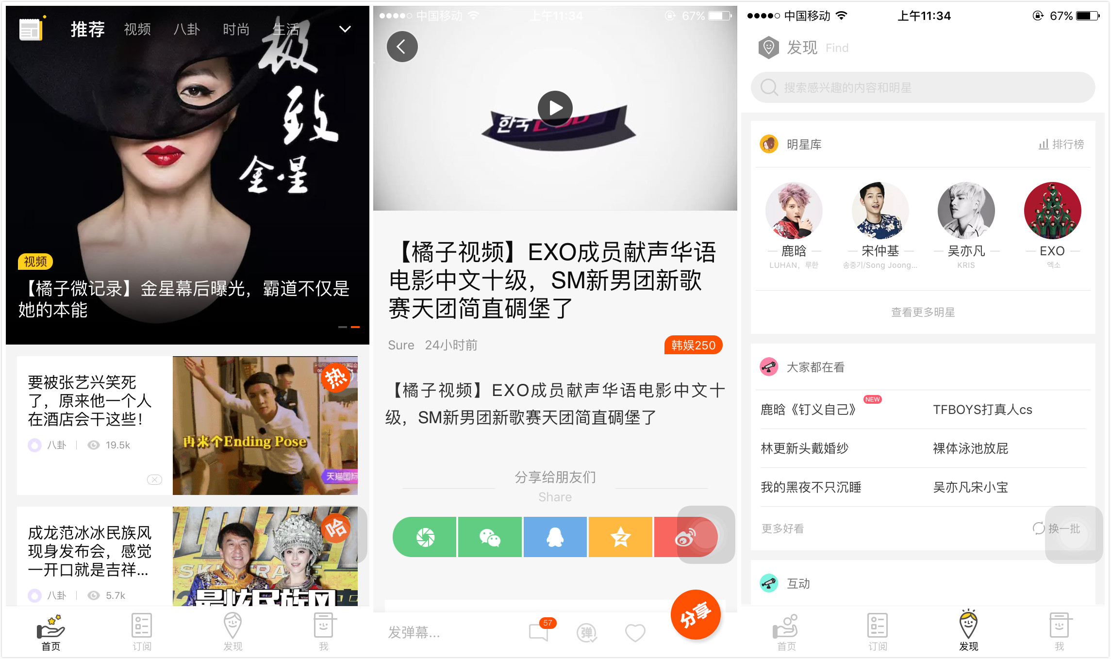 首先是话题更泛。现在的橘子娱乐大部分内容还是聚焦明星八卦,接下来他们会打开泛娱乐的外延,依托大数据,在“用户喜欢什么就做什么”的原则下将话题延伸到男性、人文艺术、亚文化等新领域中。