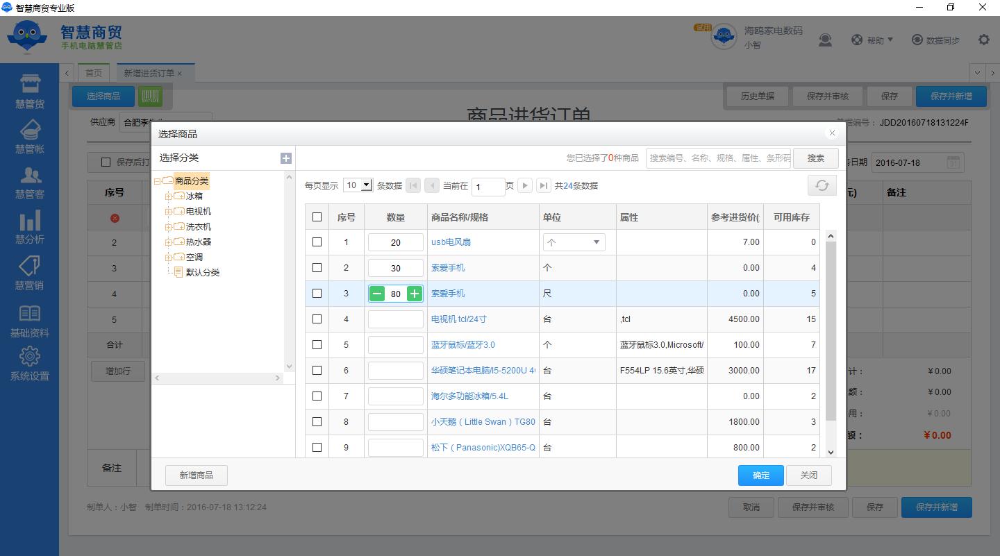 所以,“智慧商贸”定位给批发商提供进销存管理软件,主要服务商贸行业,包括食品饮料快消品、母婴产品、电子、服装鞋帽等。