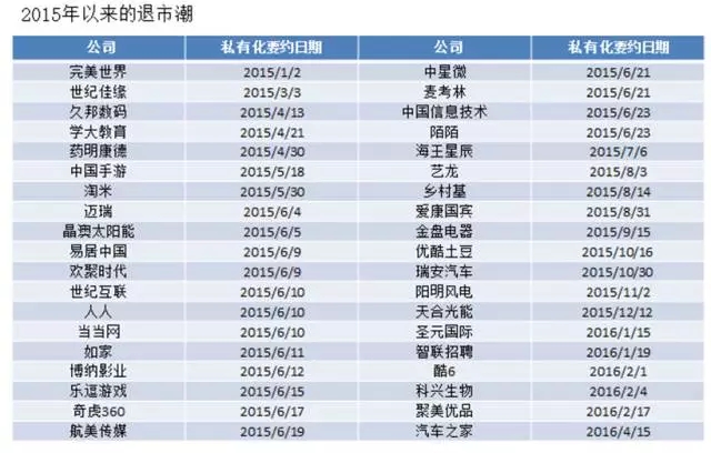 2015年以来,大批中概股纷纷选择私有化,很大程度上是看到A股大涨,带来的跨境估值套利空间。如果时间拉的太长,A股的火爆行情能否延续尚不得而知,能否搭得上这趟牛市的“风口”是一个挑战。