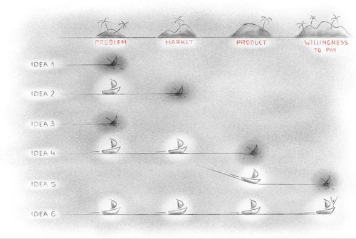 正如你将看到一样,你的许多好想法在这个过程的早期就会失败了。其实发现你想要解决的问题对于用户来说根本就不是问题这种事情常见得很。但只要坚持不懈不断迭代,最终你一定能想出可以通过验证的想法的。