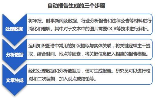 投行业务及证券研究业务中涉及大量的固定格式的文档撰写工作,如招股说明书、研究报告及投资意向书等。这些报告的撰写需要初级研究员投入大量的时间及精力进行数据整理以及文本复制粘贴的工作。而这些文档中,有大量内容可以利用模板生成,比如公司股权变更、会计数据变更等等。利用自然语言处理及OCR技术可以方便快捷的完成以上工作,并最终形成文档。
