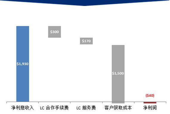 1、手续费/放贷金额:假设LC每放出一笔将获得$300 (放贷金额的~2.7% ),虽然A大行还是需要提供市场营销的资源。