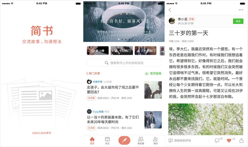 金凤春一直在寻找平台的机会,简书,一款风格清新的文字平台,成为他新的猎物,“每一代人都需要自己的内容平台,简书在花大力气搞社群,而90后、95后需要有寻找新内容平台的客观要求。”
