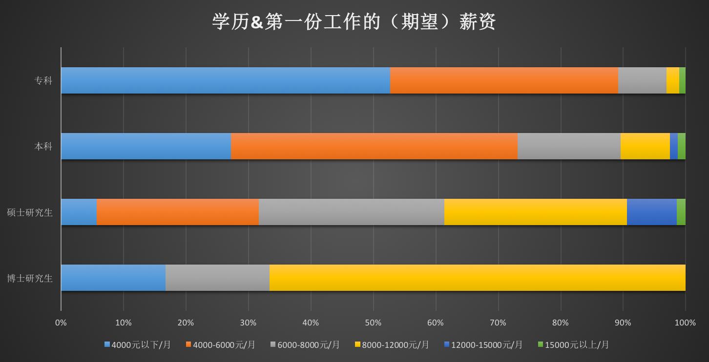 硕士学历的大学生(期望)薪资比专科学历的学生多了将近一倍?