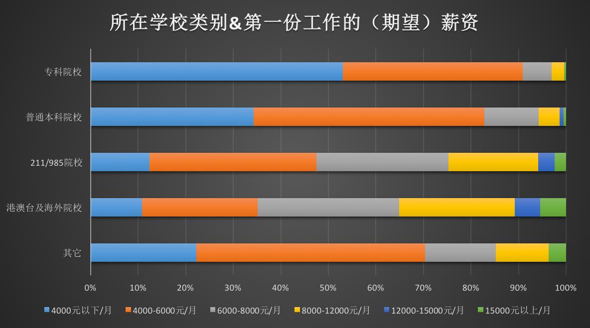 不同院校背景的大学生对于毕业后第一份工作的薪资期待大体是这样的——