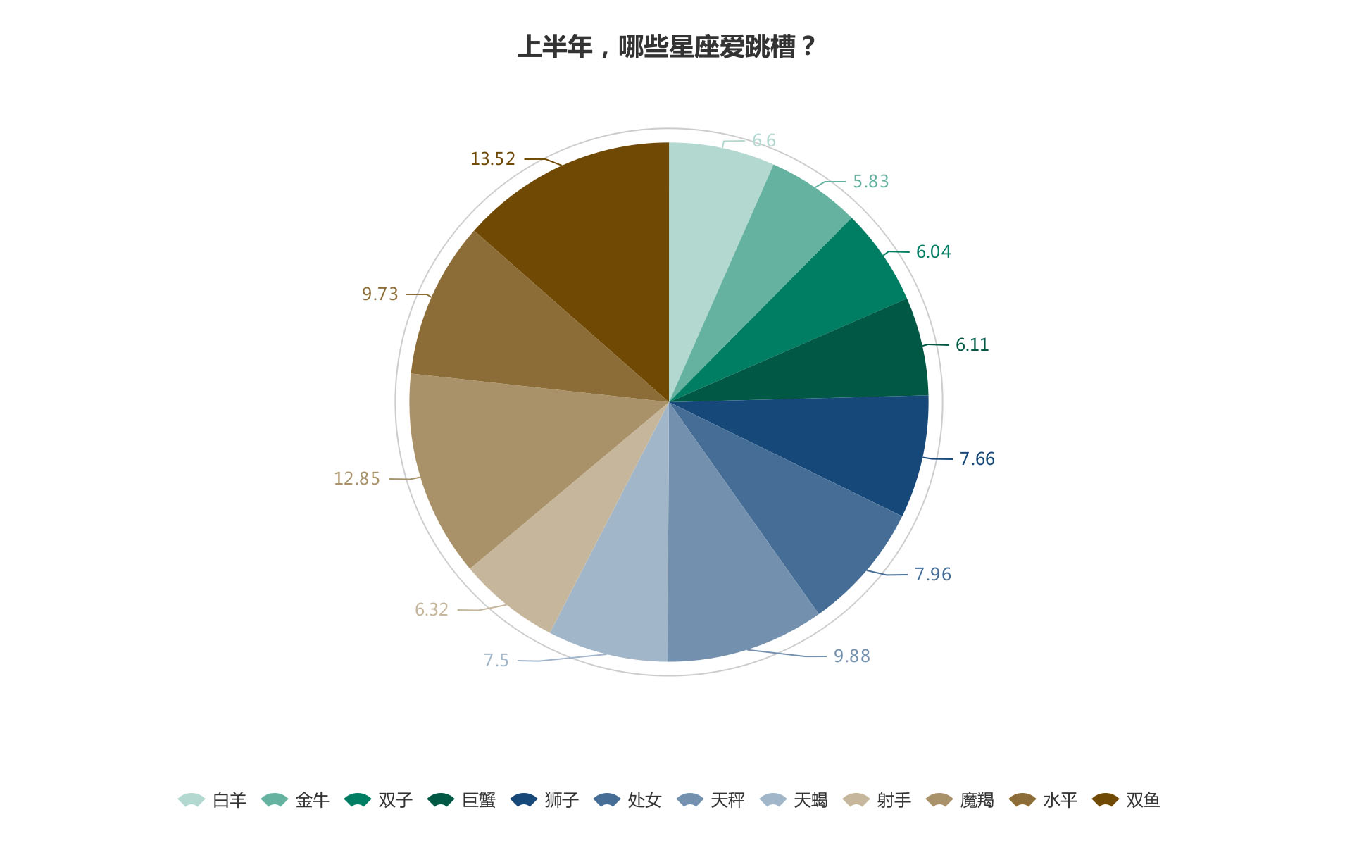 统计北上广深四城的近30,0000份跳槽数据后,“哪些星座,最爱跳槽”的榜单中最多样化“双鱼座”、谨慎纠结“摩羯座”、始终追求平衡的“天秤座”分别位列三甲,看到结果的那一刻老唐着实大跌眼镜呀~
