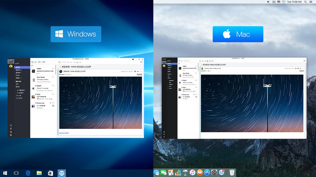 技术方面,YoMail新上线的Windows7.0版本和YoMail for Mac 1.0版本共享同一个架构。也就是说,Windows用户和Mac用户使用的YoMail版本几乎是完全相同的,除了Mac系统自带的一些特点,比如关闭按钮在左上角。Nick告诉36氪,很多应用的Windows版和Mac版在风格、功能上差别很大。但现实中的场景是,许多用户公司电脑是Windows,家里是Mac,或者相反。