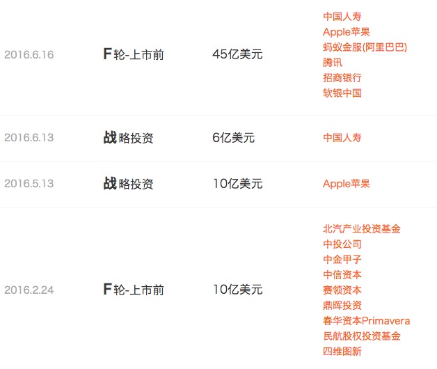 从去年9月开始,Uber中国已经完成了来自海航资本、百度、太平洋保险等投资方超过21亿美元的A、B两轮融资,目前估值约在80亿美金。