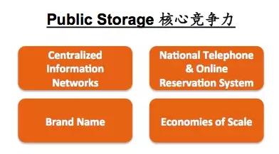 传统的自助仓储企业如何在高标准化的服务中脱颖而出?美国自存仓行业的龙头老大Public Storage市值超过400亿美金,其公司的核心竞争力是中央化的信息和预定系统、品牌以及规模效应。