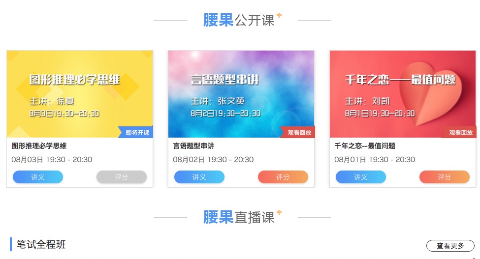教研方面,腰果公考目前有十几个全职教师,全部来自线下机构,小班老师的培训淘汰率在 80%,这些老师根据底层的知识体系,通过研究历年真题、教案、考试变化、分析时政,最终将教研标准化和结构化。