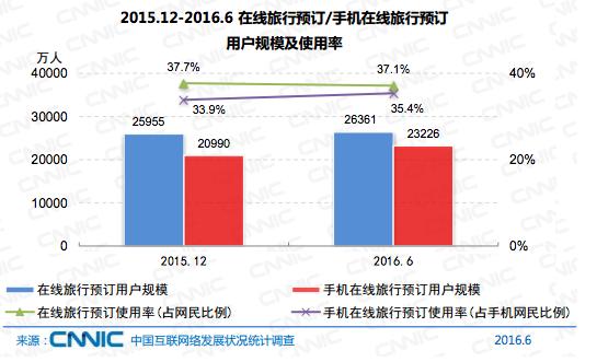 网络购物用户规模达4.48亿,手机端用户规模达4.01亿,用户规模增长达8.3%。网上外卖是今年增长最快的两大应用之一,手机端半年增长率达40.5%,用户规模至1.14亿。而新美大、饿了么、百度三家外卖配送平台的用户已经占整体网上外卖用户的83.4%,网上外卖平台的市场格局已然形成。但用户对补贴模式可能产生依赖心理,企业需要进一步通过其他服务提高用户黏性。旅游预订的规模达到2.64亿,在线预订机票、酒店、旅游业务已进入红海,竞争十分激烈。