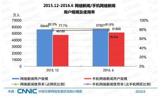网络新闻规模达5.79亿,网民使用比例达81.6%,半年增长率为2.6%,移动端成为网民获取新闻的最主要来源,各大新闻应用更注重基于用户兴趣的资讯推荐模式,但在内容质量、话题广泛性上仍有提升空间。