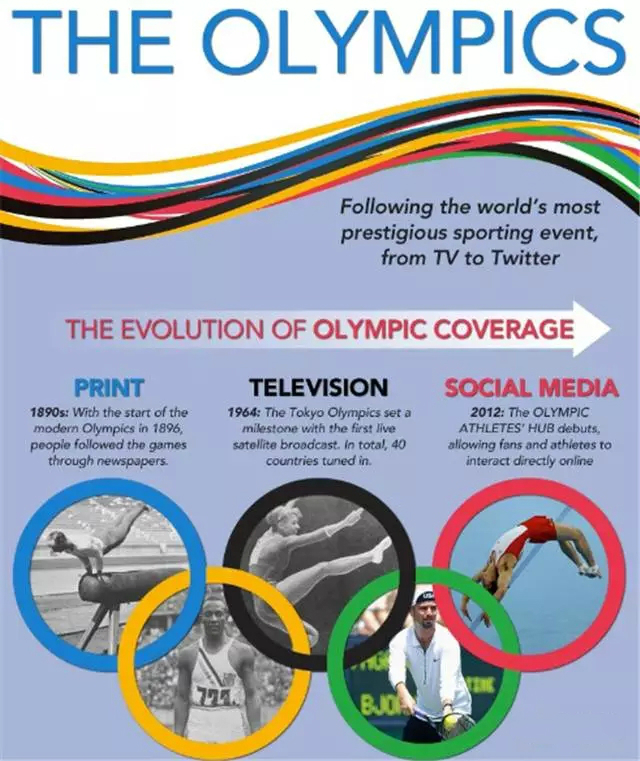 来自 Daily Infographic 的一张信息图回顾了传播媒介在奥运的历史长河扮演的角色: