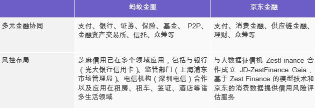 从多元金融的业务布局与风控的角度,以蚂蚁金服和京东金融为代表的巨头,具备中小互联网消费金融创业公司不可比拟的竞争优势。