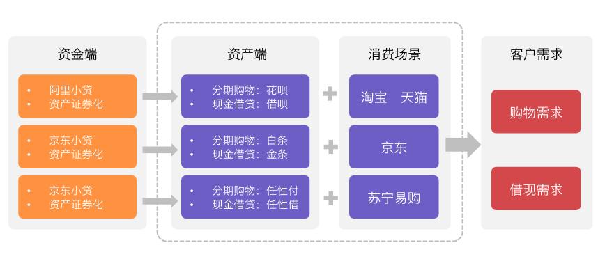 资产端:过电商或校园周边商户的消费场景获得信贷资产;