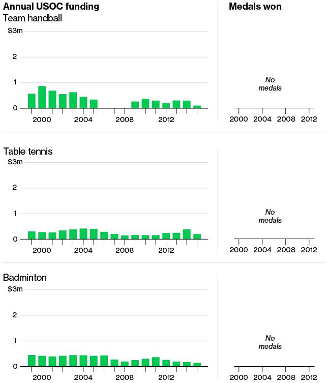 美国奥委会表示在一些运动项目上美国不可能有机会夺得奖牌,如果资金投入没有效果,他们更愿意把钱花在其它地方。美国手球队自1996年亚特兰大奥运会作为东道主参赛后就再也没获得奥运会参赛权。除了用于手球协会发展和管理的费用,美国奥运会并不愿在训练和比赛中花再多钱。