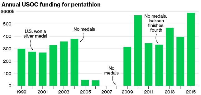 自从2000年艾米莉·德利尔赢得银牌后,美国人在现代五项(射击 、 击剑 、 游泳、马术和跑步)上就再也没有收获。但自从伦敦奥运会上获得第四名后,24岁的马尔戈·伊萨克森被看作是一个新的金牌竞争者。伴随着伊萨克森的崛起,对这一项目的投入已经增加到了58.9万美元。这一数字是该项目2009年收到资金的两倍还多。圈内人戏称这为“马尔戈· 伊萨克森效应”。
