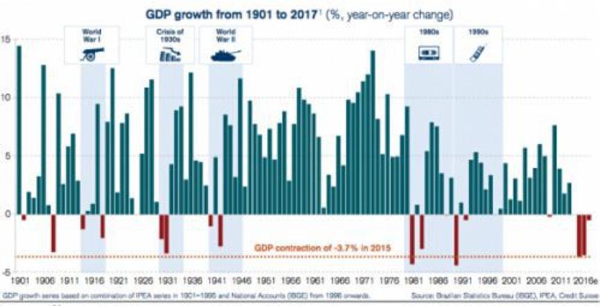 巴西经济的基本面更是令人堪忧,受大宗商品价格跳水等因素影响,2015年,巴西的经济增速分别为-3.8%,预计今年依然维持着-3.5%左右的衰退速度,而在中国,仅仅是6%的增长速度就足以让这个习惯于8%以上增速的国家一片哀鸿遍野了。