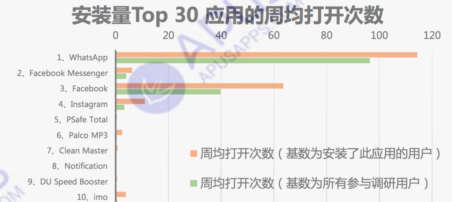 而在巴西装机量排名前五的软件中,仅有由360领投的安全软件Psafe total是本土厂商,但如果按每周打开次数排名前五的范围来看,巴西本土厂商无一入围。