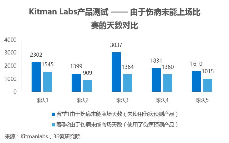 伤病预防数据分析服务在国际已有应用:根据运动伤病预防数据分析商Kitman Labs的报告来看,运动伤病预防相关的数据分析服务对于减少球队整体伤病时间有明显效果,平均减少了40%的伤病时间。