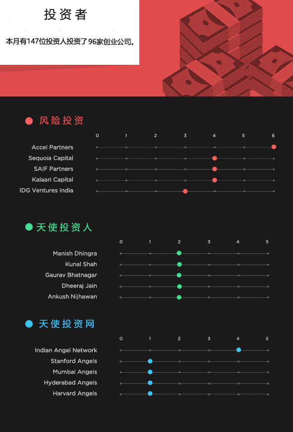 Accel Partners是7月最活跃的风投机构,总共投资了6笔交易。印度天使网络是7月最活跃的天使投资机构。