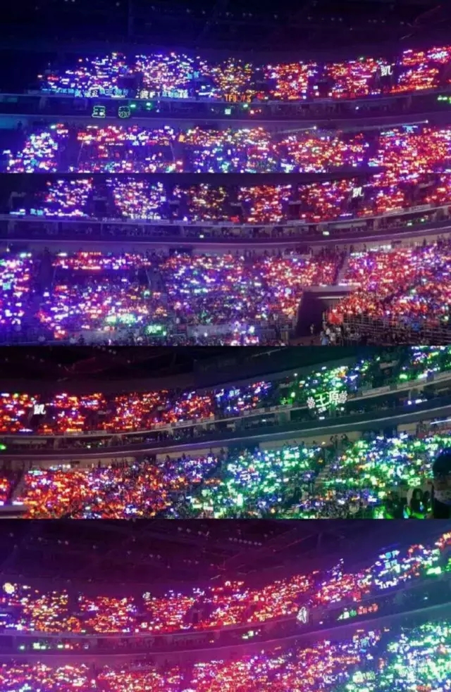 为了把这些灯幅带进去,粉丝通常要做出很多挣扎与努力,王源骑士站负责人告诉我,她们这次为带一个3m*3m的满灯灯幅进去,提前两个多小时去排队,一个安检口不让过那就再试另一个安检口,几乎把所有安检口试过来一遍。但是这次骑士站的灯幅经历了很多波折才挂出来,“现场限制太多了,不过为了让王源看到一片绿海,知道有很多只支持只追随他的人,我们经过了很多努力。”现场也有许多的散粉和站子也努力的点亮灯幅想让王源看到来自粉丝的支持。