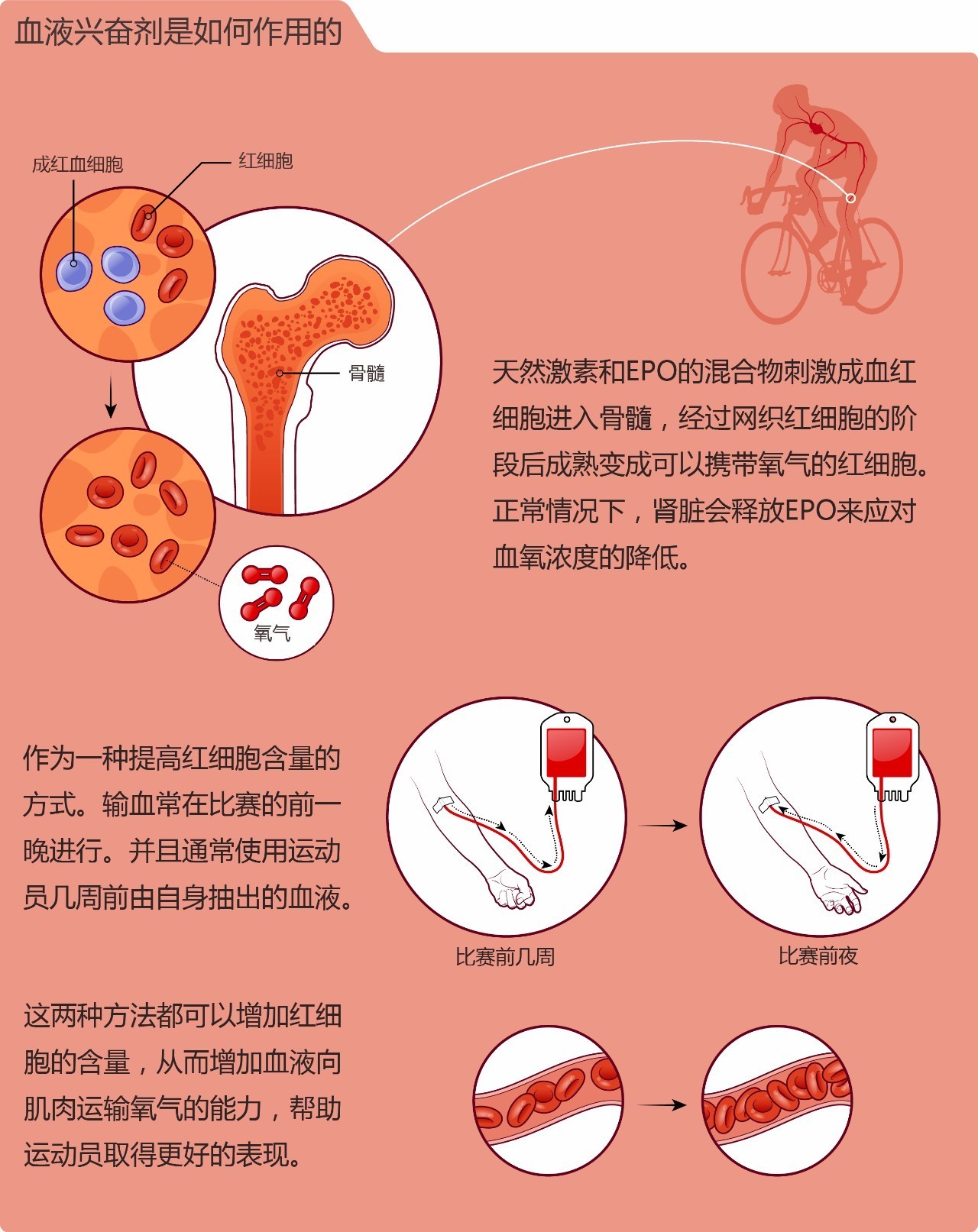血液兴奋剂指的是包括促红细胞生成素(EPO)在内,以及任何可以增加红细胞含量的激素类物质。