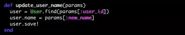 Error handling。这是最常见也是代码审核最容易帮别人看出的问题。举个例子,下面一段简单到不能再简单的代码就至少有三个潜在的问题:params 里面需要 validate 是不是有 user_id 和 new_name 这两个 key;能不能找到这个 user_id 对应的 user;save 的时候会不会有 DB level 的 exception,应该怎么处理。